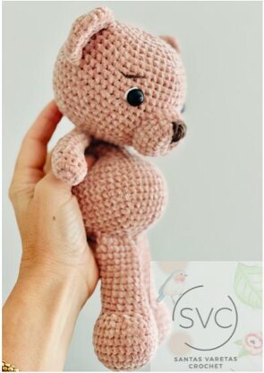 Pampa Bear was designed as a very soft toy with a Velvet fine yarn, but you can crochet it with DK sport or Acrylic with a gauge to a 3.25 crochet hook. If you choose another hook size, please consider adjusting the yarn too . Other Materials you may need are: * BROWN Thread to embroider the noise and brows * White Thread to embroider the eyes * Embroider needle or tapestry needle * Safety eyes 12 mm ( don't use them for newborn) * Scissors * Polyfill, Polyester Fiberfill to stuff ( 60 grams) *Stitch markers ( as you need to mark the beginning of a row in spiral crochet )