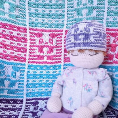 The Blankie is knit from the bottom up, in all one piece.Only one color is knit at a time; no intarsia needed. The cute Pandas, Checks and Hearts are made with slipped stitches only, making it super fun and easy!