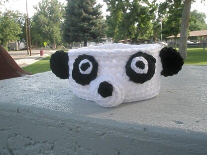 What an adorable little bowl to make for someone who loves Panda Bears. I used Red Heart Yarn but you can use any 4 ply yarn you like. Supplies: 4 ply worsted weight yarn Bowl, (I used White in Red Heart Yarn) approx. 160 yards (2 strands held together) Muzzle, eye (I used White in Red Heart Yarn) approx. 25 yards (one strand of yarn) Nose, inside eye, eye patch (I used Black in Red Heart Yarn) approx. 20 yards (one strand of yarn) G hook Yarn needle A very little amount of Polyfill stuffing (or your choice of stuffing) Stitch explanation: (sc) single crochet (ch) chain (2sctog) 2 sc together or decrease (2sc) 2 sc in one sc (F/O) fasten off ( * ) repeat between * (BLO) back loop only Magic ring or ch2 option This is a easy pattern to follow. Only 5 pages of instructions and plenty of pictures. Please feel free to ask me any questions.