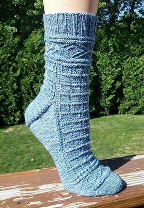 I hope that you enjoy the gansey panel of diamonds (diagonal boxes!) and the box texture of this simple pattern. For even more texture, this sock uses an EOP (eye of partridge) heel and gives the option to repeat the gansey section before the toe.