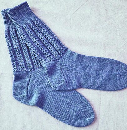 Purchase of Pattern includes permission to sell finish socks The Panorama Sock is a pretty ladies sock with an easy lace patterned leg. The pattern includes instructions for knitting on 5 dpn's using size US 0-2 (2-2.75mm) and for the kitchener stitch. Panorama looks equally good in solid, heathered, tonal and patterned sock yarns.