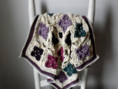 The bright colors of spring flowers were the inspiration for this blanket. This blanket allows you play with color and the arrangement of the squares allows you create a different design every time you make the blanket. The blanket is meant to be airy and is perfect for those spring days, summer nights, and even the early fall. Have fun with it I know it was fun to design.