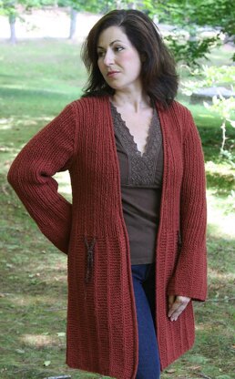 This is an easy knit long cardigan is designed to create a slimming silhouette. Pattern includes plus sizing for everyone to enjoy.