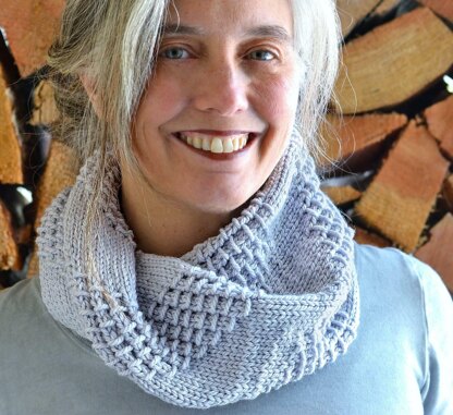A simple winding pattern with an extra twist! The thick, warm Paper Bark cowl is named after the twisty tea tree.