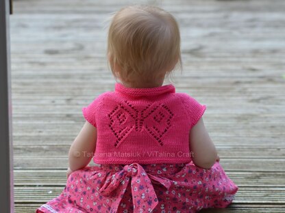 Papillon Bolero is a quick and easy summer knitting project.  This bolero is an ideal garment for hot summer days. It will turn any outfit into a stylish girly look. This beautiful bolero is knitted bottom up as one piece with no seams. It has beautiful lace butterfly pattern on the back and raglan sleeves.  The bolero is made in a beautiful pink color with cotton yarn.  My knitting pattern is easy to follow and suitable for advanced beginners. It contains five pages of written instructions, two butterfly charts for different sizes with row-by-row instructions and picture.
