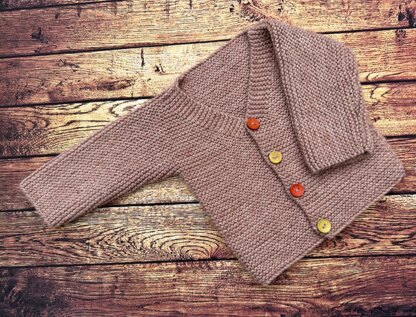 Paprika is a simple garter stitch baby cardigan with a V neck. This cardigan is knit from the lower front edges up and over to the lower back edge. On completion side and sleeves will need to be seamed.