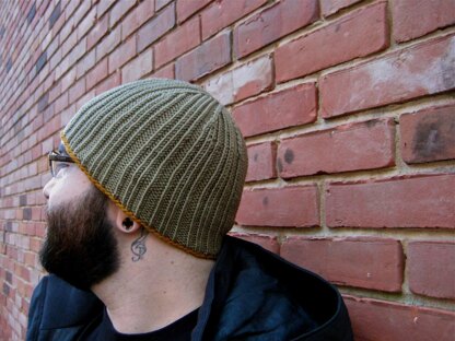Paradiddle is a classic fitting beanie hat worked in the round from the bottom up. The ribbed stitch pattern is perfect for guys and gals providing interesting texture without being overwhelming. For a turned up cuff work hat an additional 2 inches long before beginning crown decreases. (If you do this then you will need an additional skein of yarn for the larger two sizes.)