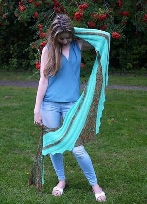 This is very functional and versatile shawl made with bright bold colors that you can see if you ever travel to tropical countries. Blue water with colorful fish, smell of pretty flowers - this shawl will remind about what fantastic time you had there during grey and rainy fall and cold winter. It's fun and never boring knit! In this sideways construction you would move from wedge to wedge forming them with short rows.