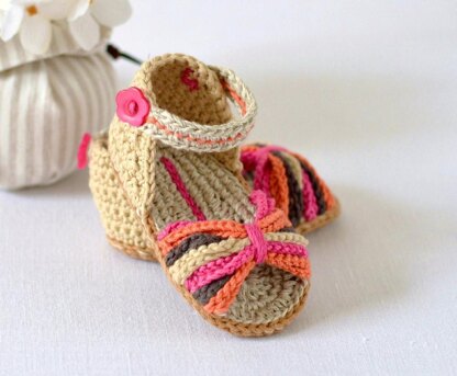 CROCHET PATTERN for Baby Sandals Paris Baby Shoes Ethnic Style Baby Booties - perfect for Beaches, Shopping, home and looking cute and stylish anywhere - all natural materials and choose your own gorgeous colors - right on trend for 2015! This is a great project for using up scraps of yarn to create something beautiful and eyecatching - make them in different colors for different outfits, or make them all in one color for a more understated look.