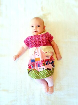 Pärla, Swedish for "pearl" is a wee shrug, perfect as an extra layer over a dress or top. Bulky yarn is made delicate with a mix of lace and garter stitch. Combine two colors for some extra fun, or make it stylish in a single color. Length can be added to turn the shrug into a cute tunic!
