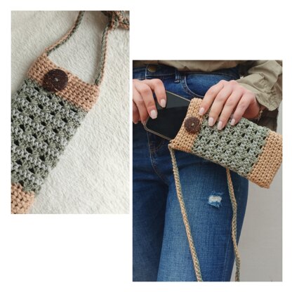 The yarn suggested to work the pouch is worsted/10 ply, using 3 different colors. The pouch in the pattern was worked with light brown, green and grey.
