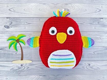 Our finished Parrot Squish Kawaii Cuddler® is 12" x 15". Hook size, yarn choice, and crochet tension will affect each individual result.