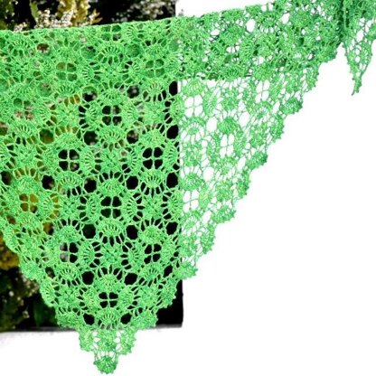 Open and lacy Parsley Field is a triangular shawl worked in crochet motifs, which are joined as you go.