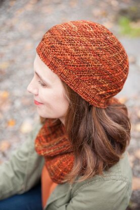 Slipped stitches go passing, or pasando as we say in Spanish, across this cozy shawl and hat duo. The asymmetric shawl is worked from tip to edge on the bias causing the slipped stitches to slant. The same effect is created in the hat using 1x1 cables, passing the slipped stitches in front of the garter background. All these slipped stitches mean it looks great in variegated as well as solid colors.