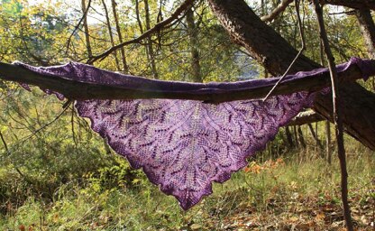 Purple sample shawl is knitted in Malabrigo Lace [100% merino, 470 yd/430 m per 50g skein] it used