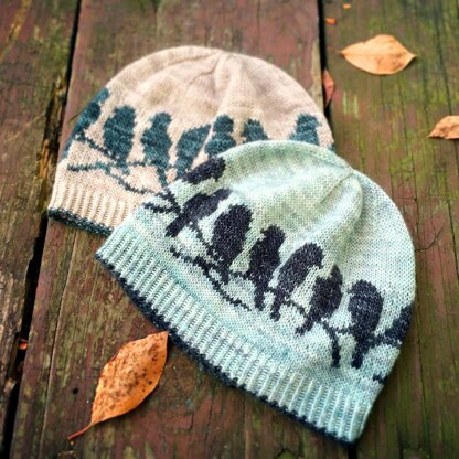 The design for Passerine Hat emerged out of a love for birds and fascination with their behavior and traits. Named for the order of birds characterized by perching habits, this fitted hat is worked seamlessly in the round, from ribbing to crown. It features a stranded bird motif in two contrasting colors and a crisp ribbing with a contrasting color accent.