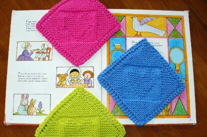 My take on the classic “Grandmother’s Favorite” cloth begins with just one stitch and is worked corner to corner, increasing one stitch per row. Once the desired length of two sides is reached, cloth decreases by one stitch per row to complete the other two sides of the square.