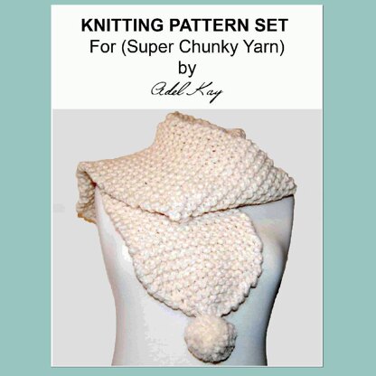 Pat Chunky Large Pom Pom Scarf Chunky Yarn Knitting Pattern by Adel Kay