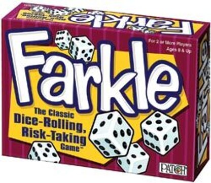 PATCH PRODUCTS-Farkle. Become a Farkle Fan with this classic Dice- Rolling, Risk Taking Game! Take a risk and build your score. Game includes 6 dice, shaker cup, score pad and rules. Package measures: 5-1/4x8x3 inches. For 2 or more players. Recommended for ages 8 and up. WARNING: CHOKING HAZARD: Small parts. Not for children under three years. Imported.