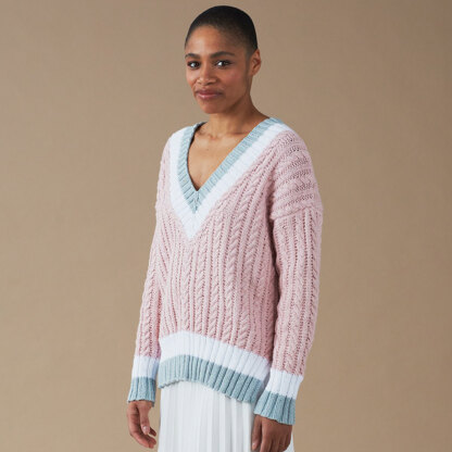 Long-line with a deep V neck, Patsy is a fabulous cable sweater with lots of positive ease. Ice cream pastels sing a song of summer, with the gorgeous weight of cotton making this a cool favourite when the breeze is up. Timeless and terrific - this will be a favourite for years to come. Knitted flat and seamed, Patsy will be admired wherever she goes.