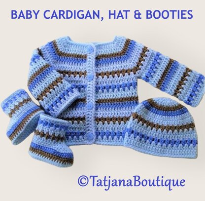 ♥ Crochet Pattern baby cardigan, hat and booties ♥ Size in this pattern 0 - 3 MONTHS. The pattern is written in US crochet terms but with a conversion at the beginning of the pattern to UK / Australian terms. Its just that some of the names of the stitches are different. Materials & tools you will need: ★ Acrylic or other yarn 150 gr approx. - DK, Double Knitting in UK, Light Worsted in the USA, 8ply in Australia. ★ Crochet hooks sizes recommended 4 mm and 4.5 mm. ★ 4 buttons. ★ Yarn needle to weave in ends (optional).