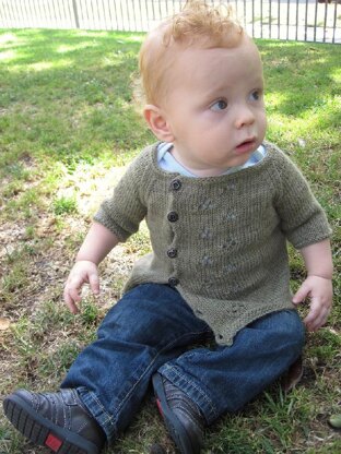 From the moment I designed [Posy Cardi][1], I knew I wanted to make a boys' version. Paw Print Cardi is that sweater! Featuring the same asymmetry and finishing details that make Posy so lovely, with a lace paw print motif up the front.
