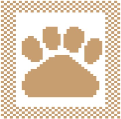 Hand-designed paw print dishcloth pattern. All of my patterns are free-drawn and converted to a pattern on knitting graph paper. I never use knitting pattern creation software to design my patterns. One skein of sugar n cream yarn on size 4 (US) needles is used to create each dishcloth.