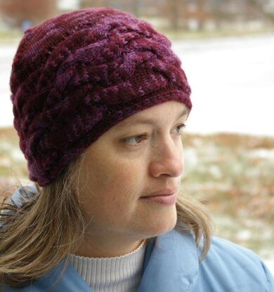 The Payden hat is designed for knitters who love cabling but aren’t quite in the mood for cables AND shaping at the same time. The hat’s brim is first knit flat with a bulky cable motif, then sewn into a band. Stitches for the crown are picked up from the selvedge of this cabled band and knit in the round. The crown is then decreased along two sides instead of in a circle; this allows the hat to lay flat (as well as to mimic the matching mittens).