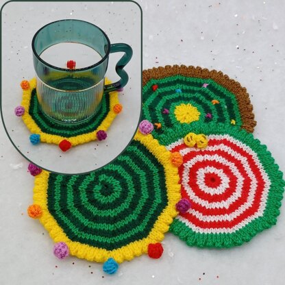 PDF Christmas Knitting Pattern DK Coasters Coffee Tea Gift Set Charity EASY Christmas Tree Elf Stocking Hot Chocolate Feliz Navidad Modern