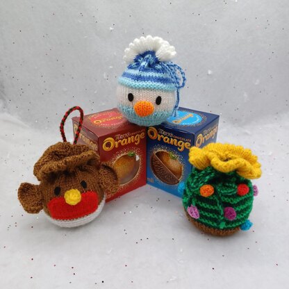 PDF Christmas Knitting Pattern DK Decoration Chocolate Orange Cover Drawstring Bag Gift Charity EASY Christmas Eve Box Robin Bauble Snowman