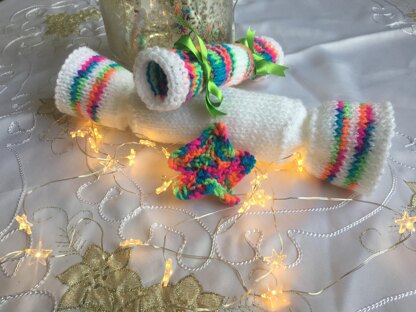 THIS IS A PDF DOWNLOAD OF MY KNITTING PATTERN SO THAT YOU CAN PRINT AT HOME. STUNNING ITEMS FOR THE TREE OR TABLE, SO EASY TO KNIT USING ODDMENTS OF DK YARN, WORKED FLAT ON 3.75mm AND 4mm KNITTING NEEDLES, WITH A FIVE POINTED STAR TO KNIT FOR THE LARGE CRACKER IF WISHED OR WHY NOT ADORN THEM WITH YOUR OWN EMBELLISHMENTS OR ADD A FEW SWEETS TO THE SMALL CRACKER INSTEAD OF TOY FILLING. SIZE OF LARGE CRACKER WHEN FINISHED APPROX 10INS LENGTH AND THE SMALL CRACKER LENGTH WHEN KNITTED IS JUST UNDER 8INS.