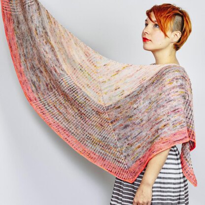 Patent (im Englischen Brioche genannt) und Kraus Rechts sind eine traumhafte Kombination – mit schier endlosen Kombinationsmöglichkeiten. Dieses erste Strickmuster der Brioche Trilogy ist ein einfaches und dennoch umwerfendes Tuch aus einer Kombination von drei Patent-Dreiecken und Kraus Rechts mit einem i-cord-Abschluss.