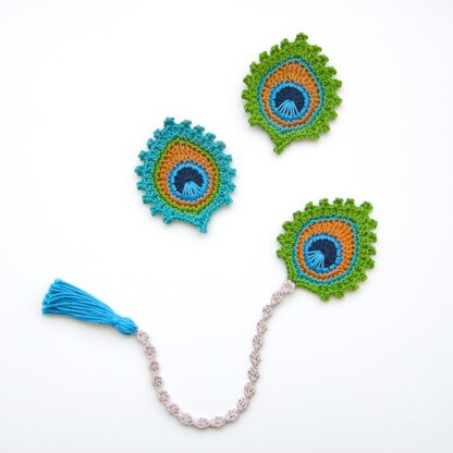 The crochet peacock feather applique or motif is my own original design. It measures approx. 9 x 7.5 cm / 3.6 x 3 inch and I make it using 100% mercerized cotton and a 3mm hook / D hook.
