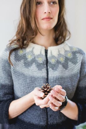 A fitted top in Tunisian crochet with an attractive colourwork yoke inspired by cold, rocky landscapes.