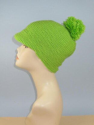 This is my Peak Garter Stitch Bobble Cap knitting pattern. This wonderful cap is quick and easy to make and due to the design does not need any stiffener in the peak so there are no washing problems. The knitting pattern provides full written instructions for 4 sizes XS (baby), S (child), M (teen / woman), & L (man) and there are lots of photos throughout to help you with the simple cap makeup and bobble. It is worked flat on 4 mm needles in any dk (8 ply) yarn of your choice.