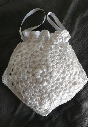This is a pattern for a pretty purse that can be used for a number of occasions such as communion, bridal or evening. Two pent motifs are crocheted and then joined together and a shell edging around the opening is worked. Ribbon can be weaved through the eyelet row to form handles or an ornate decorative handle could be attached instead. I would recommend lining the purse. A contrast colour fabric to your yarn is another idea.