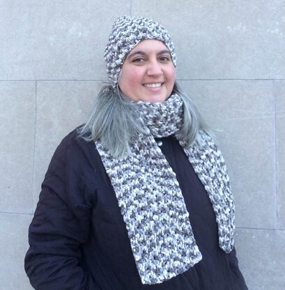 This knit-look, unisex scarf pairs well with the Bulky Faux Mistake Rib Hat.