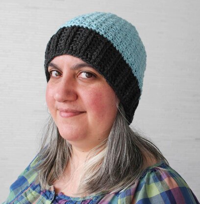 This reversible, slightly slouchy beanie is crocheted in turned rounds to enhance the textured stitch pattern.