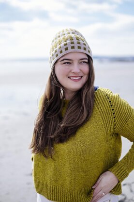 Peberholm is a graphic colorwork hat, worked in the round from the bottom-up and featuring a cleverly-constructed faced brim for a cozy fit and extra warmth around the ears. This pattern is written in four sizes to fit a wide range of heads, and includes instructions for three brim construction methods, so knitters can choose the option that best suits their personal knitting preferences.