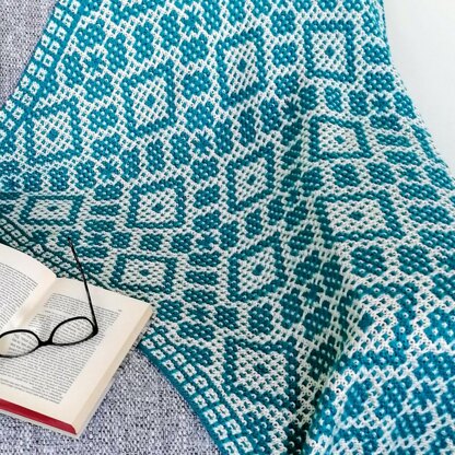 The Peetri pattern is the second pattern in the collection inspired by a rich heritage of Estonian national costumes. The pattern is loosely based on a woven belt pattern collected in 1912 from Müüsleri village in Peetri parish. The first pattern in series was the Urvaste blanket. The blanket is worked in one piece in a mosaic garter stitch. The size is easily adjustable by making more or fewer repeats. Smaller sizes are suitable for a cushion cover or a doll blanket. Medium sizes make a great baby blanket or lapghan. Directions are given for a square blanket but can be easily worked as a rectangle by working more repeats. The charts are also given in reversed colours (page 5) for ease of use in case you decide to swap the light and dark colours in your blanket. The sample was made in Aran / 10 ply weight acrylic yarn. Different yarn weights and fibres can be used. Using different fibres affects the size of the blanket and the amount of yarn needed.