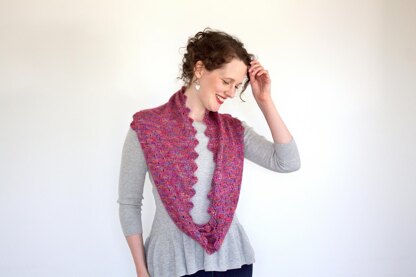 A beautiful lace cowl with a border of buds framing a simple eyelet pattern. Faery Wings has the perfect combination of drape and warmth for this pattern!