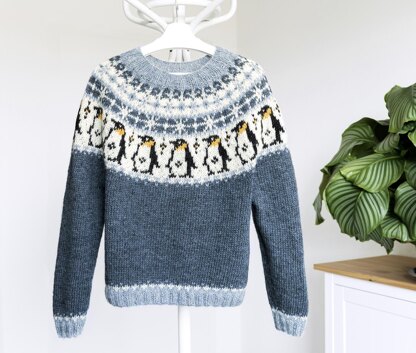 PENGUIN Icelandic Lopapeysa sweater is a unique design in the tradition of Icelandic knitting. Body and sleeves are worked in the round from lower edge to underarms, then joined to work yoke in the round. Round begins at left side of body. On yoke, round begins on the left side of back at the joining of body and sleeve. For knitting the sleeves, I recommend using the ‘magic loop’ technique, which helps you to avoid bunching up when enlarging and working on pattern, and also saves your time.