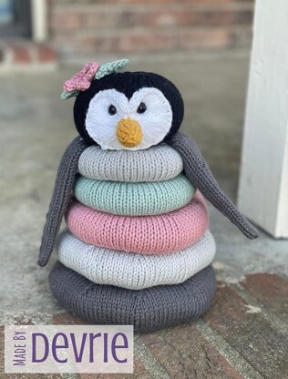 This adorable knitted stackable ring toy is the perfect gift for any new mom or child in your life. Isn't it the cutest little penguin you have ever seen? Made with cotton yarn, it is easy to clean and manage. It will provide your child hours of fun. This toy is made by knitting in the round using US size 5 needles. It will stand about 12 inches tall and is about 8 inches wide. It leans more toward advanced on the skill level but would be a nice challenge for an intermediate knitter.