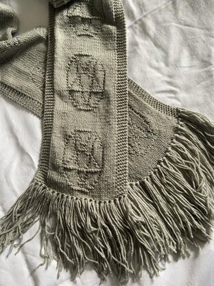 The scarf measures approximately - 7 inches wide and 56 inches in length. What's needed:- 4 mm knitting needles Tapestry Needle