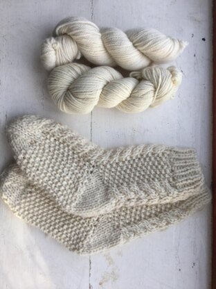 Chunky Cabled Lounge socks. Easy 2 needle socks, seamed at the back. Great for a knitter that's new to sock making.