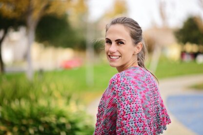 The design of this shawl was inspired by the yarn - the colorway was so pretty that I knew I wanted to let it shine! Expanding sections of puff stitch lace were just the thing, and when I saw the little pink and gray puffs I was instantly reminded of peppercorns!