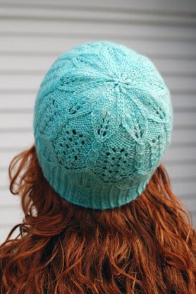 Some days we all need a touch of whimsy; let Peppermint Leaves whisk you away to the place of your dreams. Delicate faux cables flow effortlessly into pretty leaves that dance around your head, leading up towards the beautifully shaped crown. Choose yarn with a beautiful stitch definition to accentuate the details. Available in three sizes.