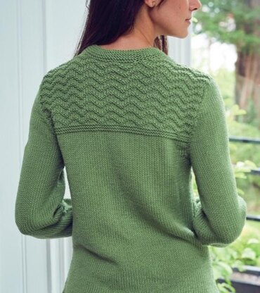 This stylish, close-fitting cardigan is knitted in pieces to create a neat seamed finish. The edging is worked in the round in garter stitch on a long circular needle.