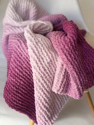 If you have only recently learned how to knit and you are eager to start a project, this is the one! The whole blanket consists of only one stitch. BUT, because this is such a yummy yarn, even seasoned knitters will love making this blanket. It works up super quick, can be done while binge-watching your favorite series and will make a lovely, handmade gift for someone special in your life. The beautiful, slow color change is achieved by using Bernat Blanket Perfect Phasing yarn. Not only is Bernat Blanket incredibly soft, but it also adds instant heat, and I mean INSTANT! All my other blankets have been downgraded to cupboard-duty as nothing compares to the warmth of this cozy blanket. The only difficult thing about this pattern is choosing which color to use! The pattern is written in English and includes different size options. Detailed information about yarn substitution is also included, should Bernat not be available in your country.