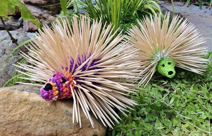 Basic crochet skills are all that's needed to create these wonderful porcupines ( single crochet, single crochet decrease, and slip stitch, that's it!), as well as fiberfill and of course... toothpicks!!